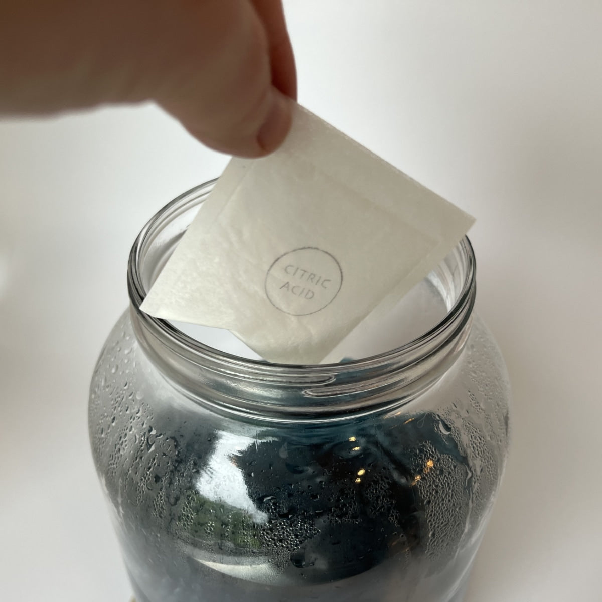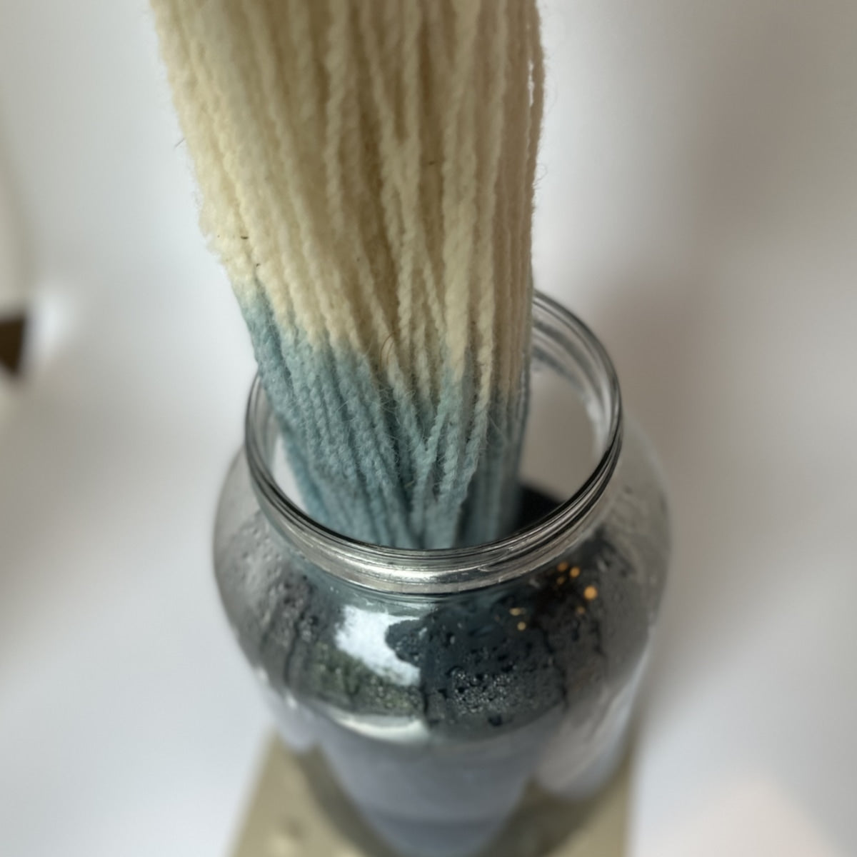 I used a pour kettle with thermometer to heat the water. It was exciting to watch the color from the tea bag darken the water. The best part was adding the packet of citric acid and seeing the color kick on the wool! It was quick, and suddenly the water was almost devoid of color. I used two 50 gram skeins of my singles wool for use in a future tapestry. I’m a very happy customer!
